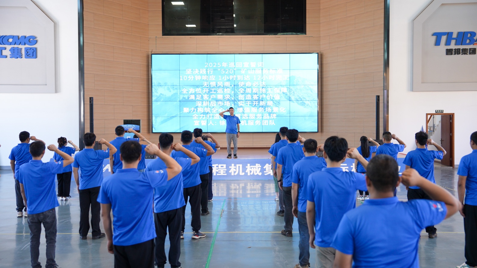 錚錚誓言聲聲入耳、字字入心。張總帶領(lǐng)服務(wù)團(tuán)隊(duì)莊嚴(yán)宣誓:“堅(jiān)決踐行“520”礦山服務(wù)標(biāo)準(zhǔn),10分鐘響應(yīng),1小時(shí)到達(dá),12小時(shí)完工;無懼風(fēng)雨,使命必達(dá),全方位開工巡檢,全周期施工保障,滿足客戶需求,創(chuàng)造客戶價(jià)值;深耕后市場,實(shí)干開新局,聚力構(gòu)筑全心+,增值服務(wù)場景化,全力打造行業(yè)首選服務(wù)品牌”這一刻,堅(jiān)定的眼神交匯成信念的星河,嘹亮的聲音匯聚成前進(jìn)的號角。誓言既出,使命必達(dá)!智邦服務(wù)精英將駕乘服務(wù)車輛,在市井深處,在郊區(qū)鄉(xiāng)野,在每一個(gè)徐工挖機(jī)能到達(dá)的地方……向著初升的朝陽方向延伸,讓服務(wù)的光芒照耀更遠(yuǎn)的地方。