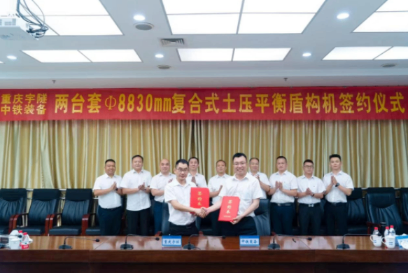 6月23日,中鐵裝備集團(tuán)與重慶智邦集團(tuán)——重慶宇隧交通設(shè)備有限公司在鄭州舉行兩臺(tái)φ8.83米復(fù)合式土壓平衡盾構(gòu)機(jī)采購(gòu)簽約儀式。